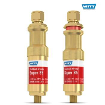 符合DIN EN ISO 5175-1 標準的氣體回火防止器, 可複位, 帶警示標誌, 所帶安全元件最全, 適合於大流量的應用