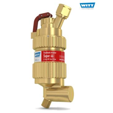 符合EN730-1/ISO5175 標準的氣體回火防止器,可復位,帶壓控單向止回閥[PV]和警示標誌,適合於較大流量的應用