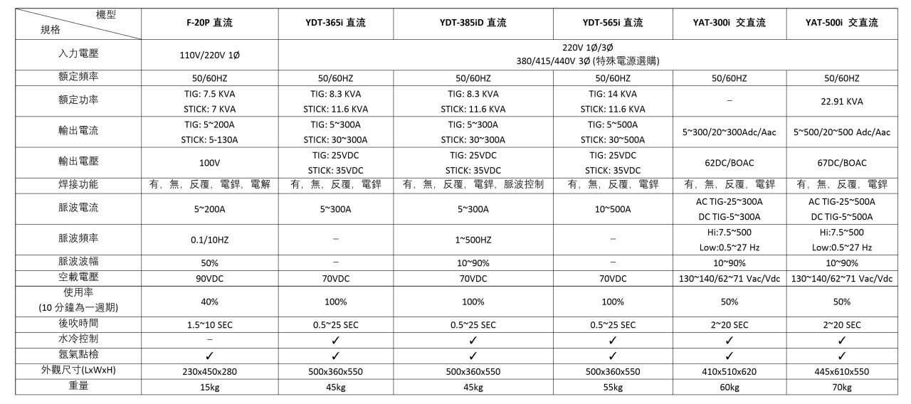 - 交直流多功能銲接,可銲接鐵、非鐵、銅及鋁合金等多種金屬。